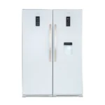 علاوه بر این، در بخش پایین یخچال، 2 کشو قرار دارد که برای نگهداری میوه و سبزیجات طراحی شدهاند و قابلیت حفظ رطوبت را دارند. روشنایی داخل یخچال نیز توسط چراغهای LED در سقف و دیوارههای پشتی تامین میشود. همچنین، یخچال از درب دو لایه برخوردار نیست و به همین دلیل میتواند بر کارایی انرژی تاثیرگذار باشد. از دیگر ویژگیهای این یخچال، میتوان به آب ریز، نمایشگر لمسی و یخ ساز اشاره کرد. نمایشگر لمسی امکان نمایش دما و تنظیمات را فراهم میکند که به کاربر کمک میکند تا دمای مناسب را برای نگهداری مواد غذایی تنظیم کند. همچنین یخ ساز داخلی، امکان تهیه آب یخ را به صورت مداوم فراهم میکند.